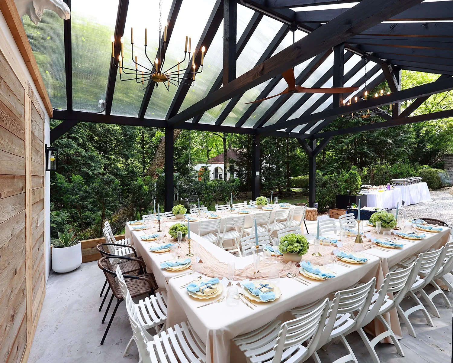 Tucked deep within the garden and surrounded by lush greenery, this serene outdoor space is bathed in natural light and embraced by the soothing sounds of nature. Where nature meets elegance—an outdoor pavilion for your most cherished moments. Whether you’re hosting a reception, private dinner, intimate gathering, charming tea party, or tranquil yoga retreat, the Garden Pavilion offers the perfect setting. It beautifully complements our villa events and provides